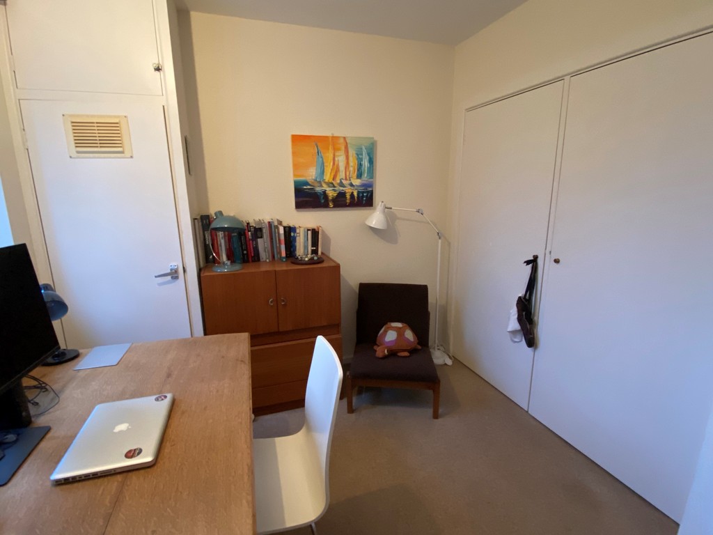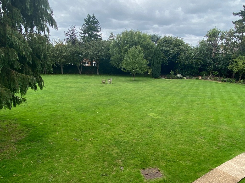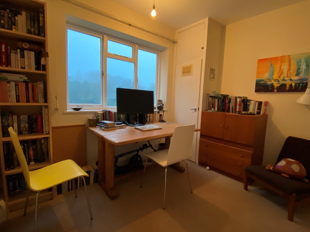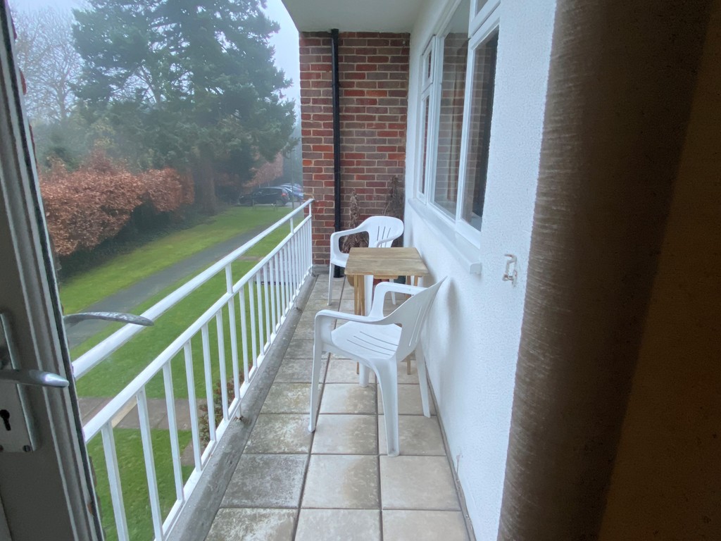 There is a door leading onto a balcony overlooking the stunning communal lawns