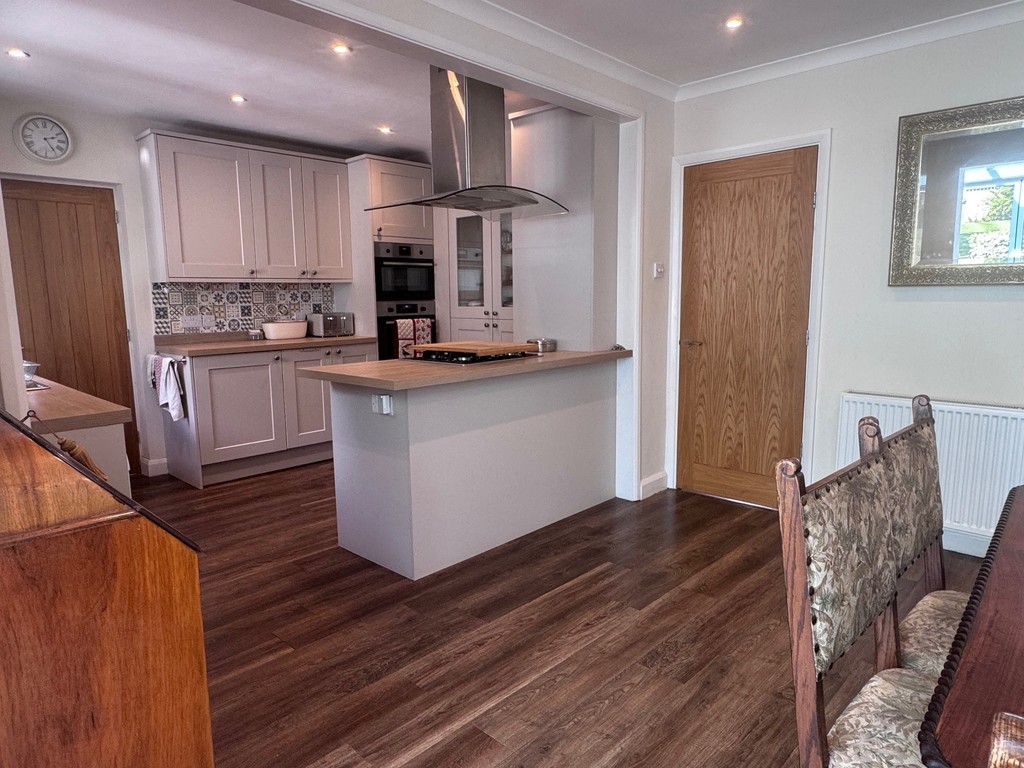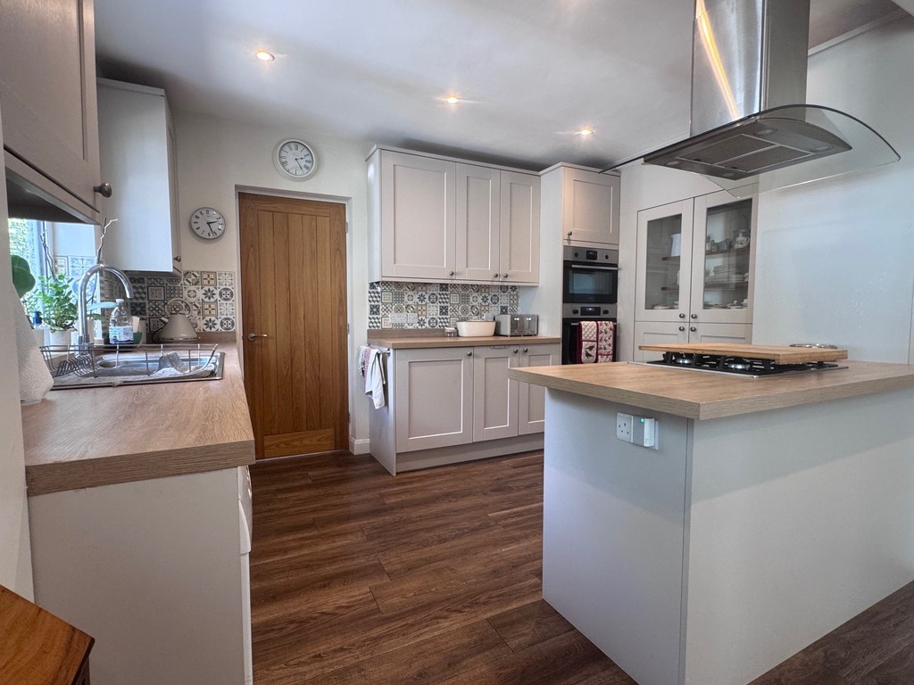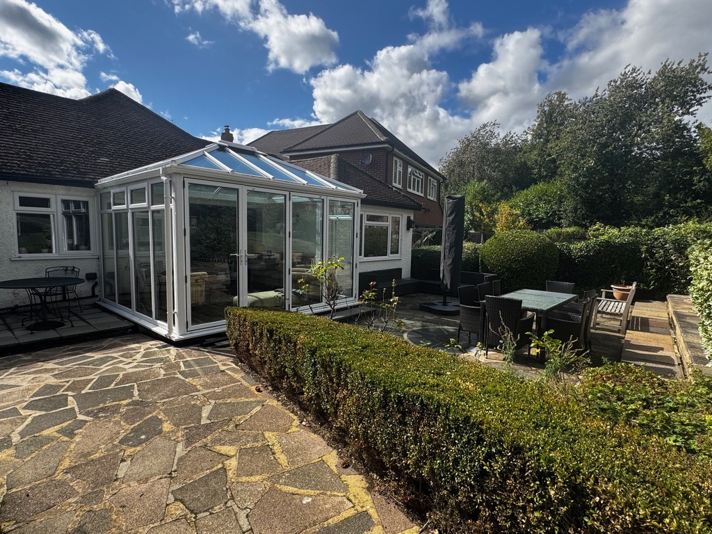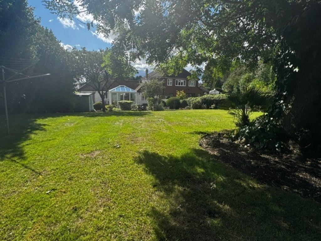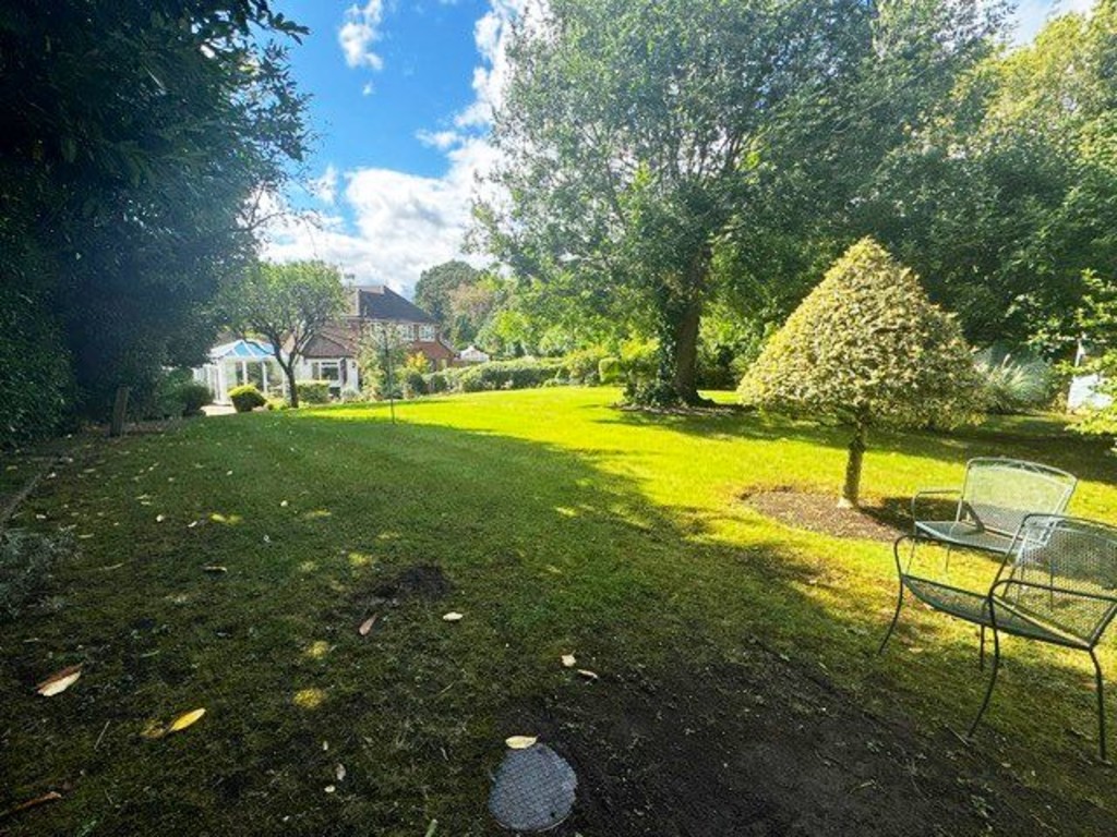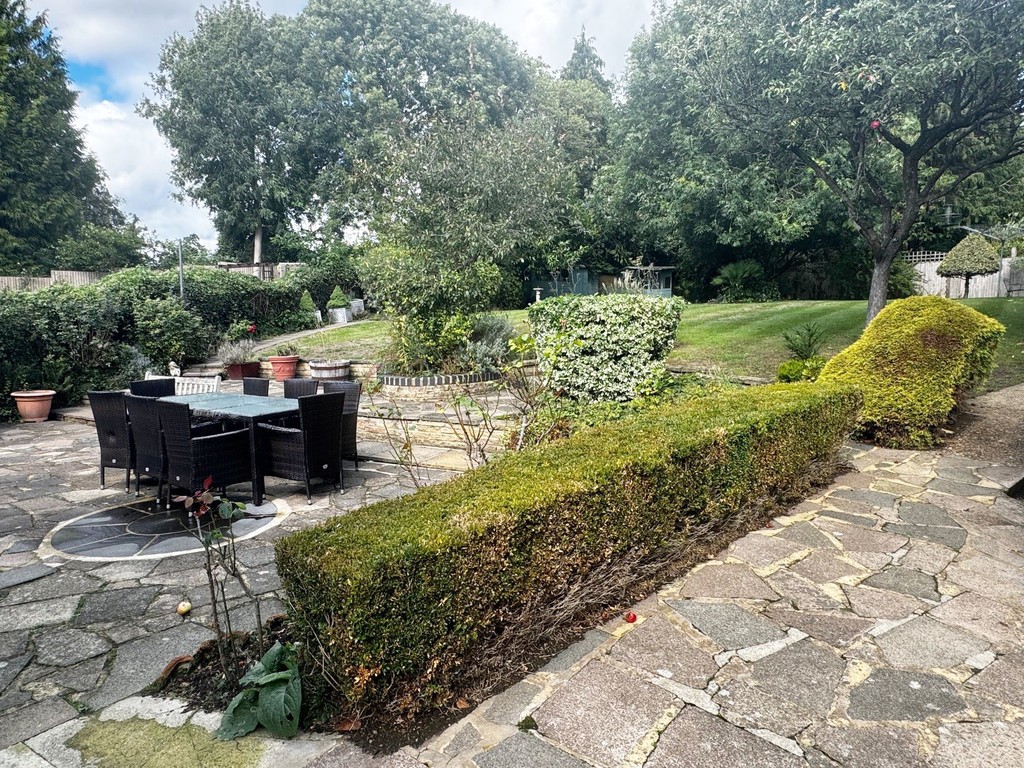 GARDEN 100ft in length. Split level. Extremely good size being of irregular shape fanning out towards rear. Large patio area. Steps up with flowering shrubs and raised beds and boarders. Further side patio. Large area of lawn. Outside store with light and power. Various mature trees and shrubs, some being fruit bearing. Gated side pedestrian access. To the front of the property there is a crazy paved driveway providing parking for approximately 3 vehicles. Further enclosed side front area.
