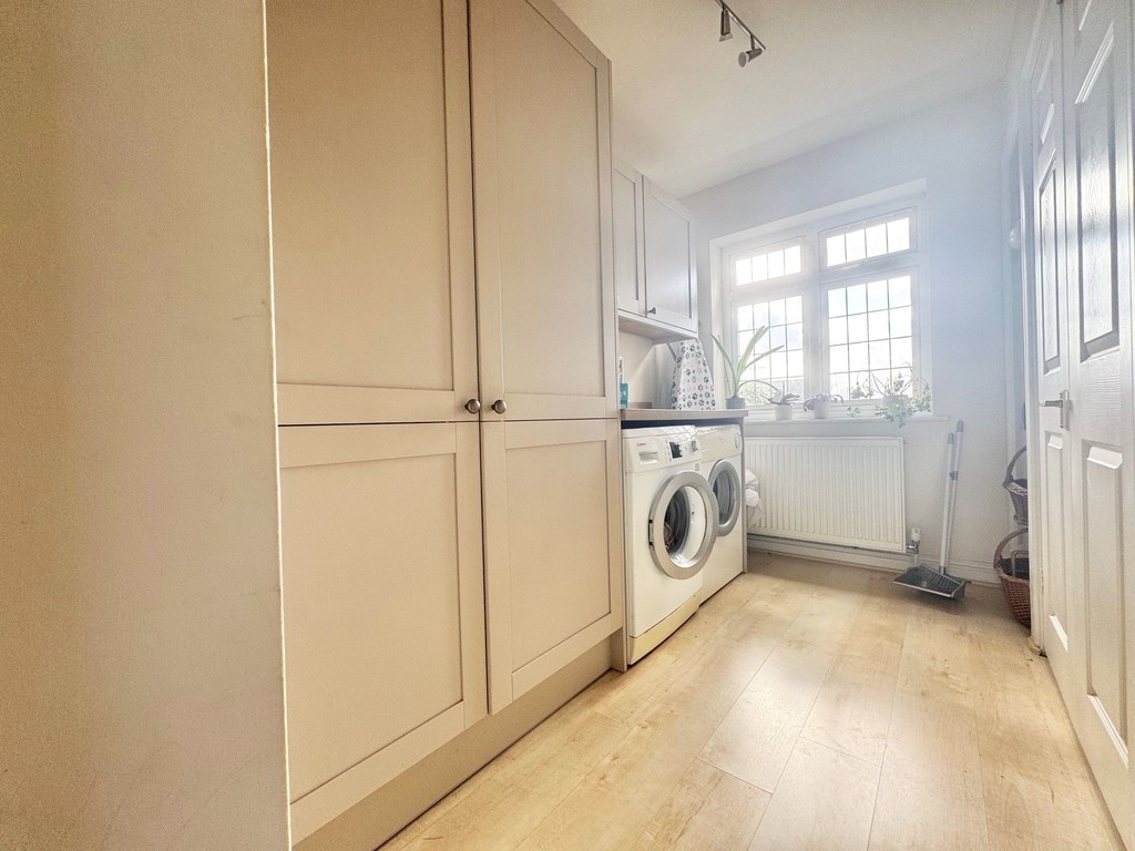 UTILITY ROOM 9' 9" x 5' 7" (2.97m x 1.7m) Side lobby assess with double glazed door to rear garden. Open onto utility room with plumbing for washing machine. Space for dryer. Double glazed leaded light window to front. Built in flush fitting storage cupboard housing Valiant boiler supplying domestic hot water and central heating. Door to guest w/c.